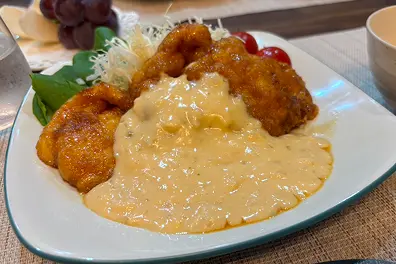 - たっぷりとかける特製タルタルソースは、濃厚さと酸味が絶妙に調和し、まさに昭和の懐かしき味わいん再現。